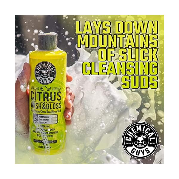 SPLISH SPLASH, GIVE YOUR CAR A BATH – Citrus Wash & Gloss is a concentrated car wash soap that not only makes your car squeaky clean, but contains gloss enhancers to make your paint pop. It’s hyper concentrated, so one 16 oz. bottle can give you 8-16 washes, depending on your wash method and cleaning needs.