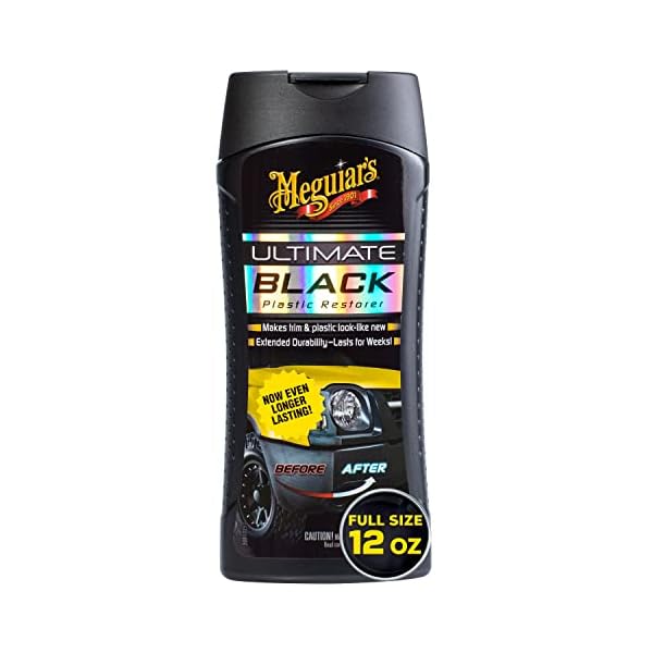 CAR PLASTIC RESTORER: One 12 oz bottle of Meguiar’s Ultimate Black Plastic Restorer brings new life to all non-painted exterior plastic, vinyl and rubber trim