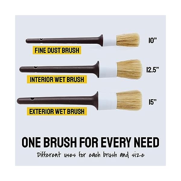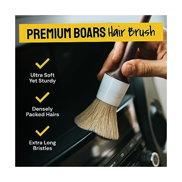 TACKLE HARD-TO-CLEAN AREAS: 3 pieces different in size so you can get to each and every area of your auto. Our brush is crafted from soft yet durable boar hair, tough on dirt and grime but gentle on delicate surfaces like dashboards and electronic equipment.