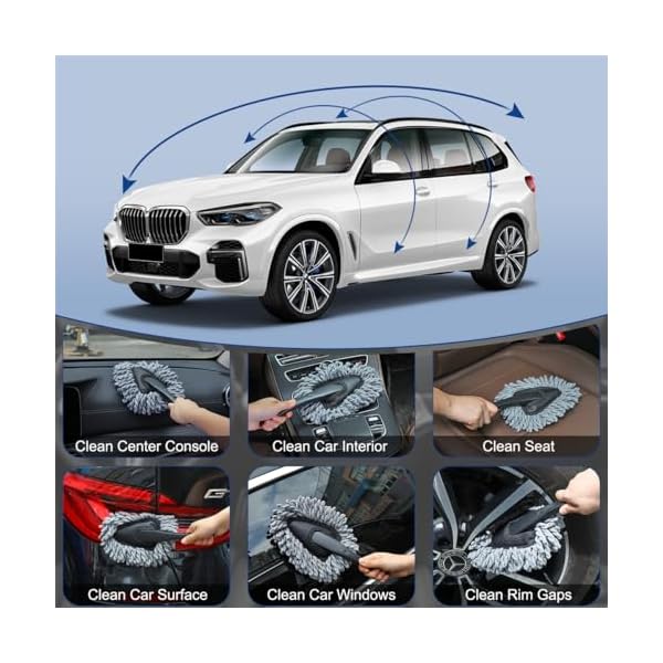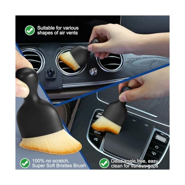 ✅【Scratching Free & Fast & Efficient & Various】Our car detailing duster brush made of import soft bristle without metal parts means no chance of marring or scratching your favorite car.You can use the duster kit to remove dust from various areas(such as air vents, dashboard, loudspeaker, shift paddles, car center console, central armrest box, leather,seats, other small gaps).