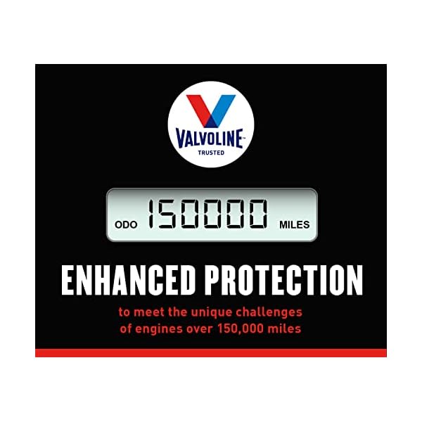 High-mileage motors come with unique challenges: oil consumption, leaks, engine wear, improper engine temperatures and loss of power. Upgrading your motor oil to Valvoline High Mileage with MaxLife Plus Technology can help you increase the longevity of your car, truck or SUV with over 150,000 miles. It’s the synthetic blend motor oil proven to offer high-mileage engines better protection against the four major causes of engine breakdown – wear, friction, heat, and deposits. Our exclusive formula provides multi-dimensional engine defense protection including powerful detergents to keep your older engine clean of gunk, grime, and deposits, while curbing excessive oil consumption. Its anti-wear system surpasses industry standards with Moly Additive Protection to create a fine film layer between metal surfaces, minimizing friction to boost performance and power. Exceptional seal conditioners refresh aging seals to prevent leaks and keep oil where it needs to be. And our superior antioxidants help our oil maintain its effectiveness in extreme heat and cold operating conditions. Choose Valvoline High Mileage 150K with MaxLife Plus Technology to keep your favorite ride on the road for years to come.