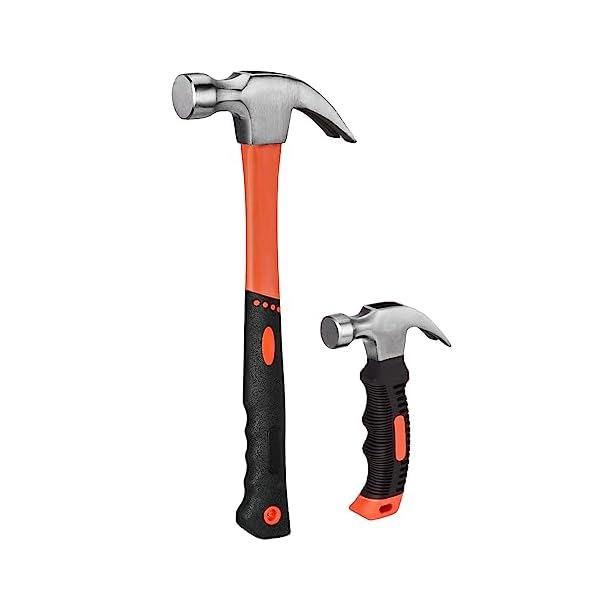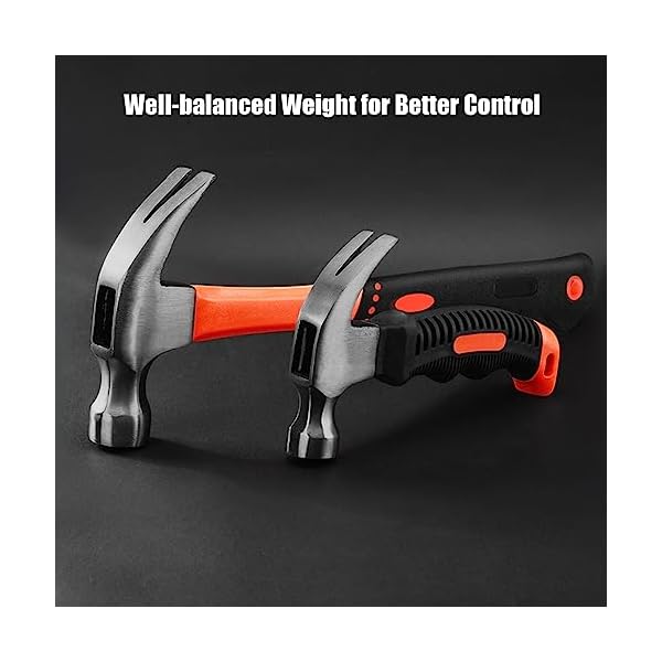 🔨【Handy and Compact】Its well-balanced weight and robust design allows for easy handling and convenient operation. Features a hang hole for convenient storage. Two sizes hammers will meet all your needs for all hammering and clawing applications.