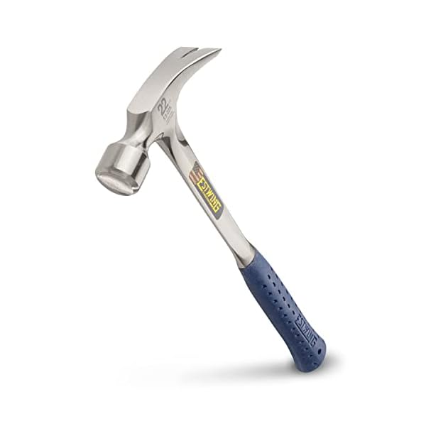 This smooth-face framing hammer crafted by Estwing offers a forged one piece head and handle of tool steel, fully polished, and a blue nylon-vinyl, deep-cushion grip that’s molded on and absorbs all shock. Since 1923, the Estwing family and its employees have taken pride in designing and manufacturing the world’s most durable, comfortable and attractive striking and struck tools. All claw hammers, axes, specialty tools and pry bars are manufactured to the highest possible standards and offer a true value to both tradesmen and craftsmen alike.