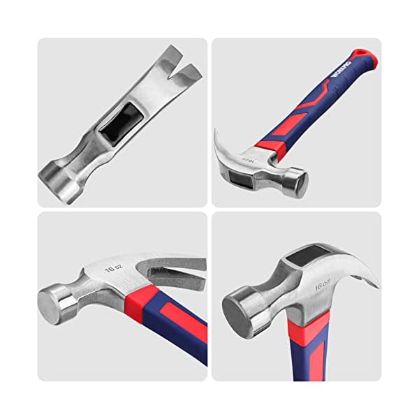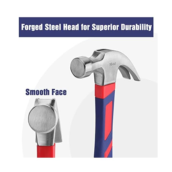 Premium Quality&Durability: This claw hammer is made with durable forged steel. The face of the hammer is polished smooth and the claw is angled which makes nail removal easy. Finely polished finish with clear coating prevents corrosion and rust