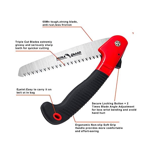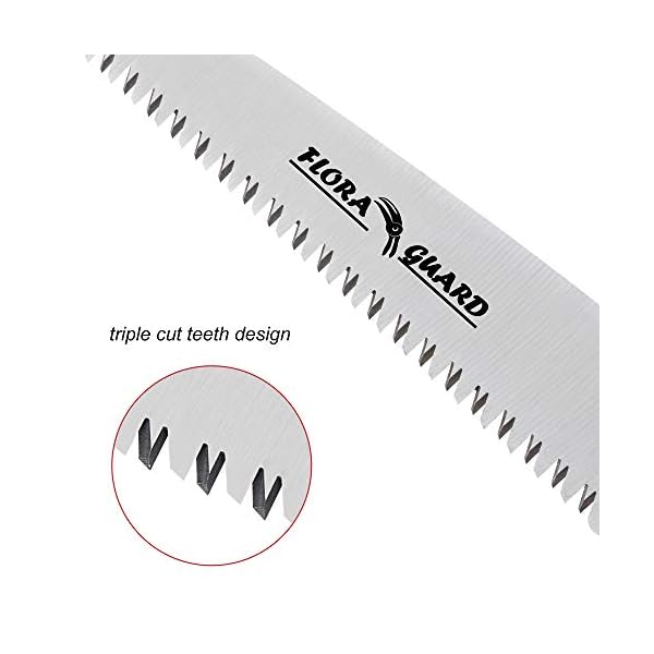 FLORA GUARD hand saw is easy to open & close with a lock. Which keeps blade firmly in place during use and prevent the accident of saw blade falling or gripping by impacting, beside, it ensures safe when not in use. Dedicating to make a better tools for gardeners.