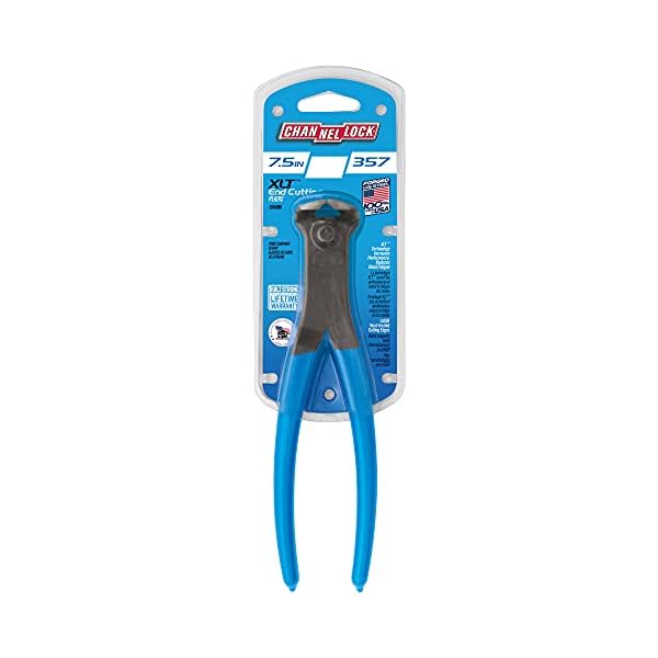 Channellock 357 7-inch high leverage end cutting Nipper pliers | Extreme leverage technology (XLT) requires less force to cut than other high-leverage models | laser heat-treated cutting edges| forged from high carbon steel | Made in the USA