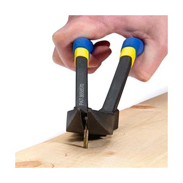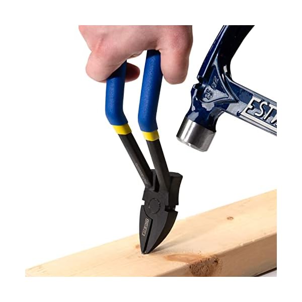 Save costs and be able to re-use wood boards, planks, and panels on home repair, maintenance, and construction projects by easily removing nails, brads, tacks, and staples with the Estwing 8.5-Inch Heavy-Duty Nail Hunter. Designed specifically for the purpose of removing embedded nails, brads, and staples from wooden baseboards and window frames with minimal damage, this handy tool features a fulcrum-like head design that gives maximum leverage combined with a large surface. The pointed tips can dig into softer wood to remove embedded fasteners and when dealing with harder woods and materials, the base of the head is flattened and reinforced to allow striking with a hammer to chase after sunken fasteners. The handles are offset to provide added leverage during removal as well as give ample clearance for hands and knuckles during use. Spring assisted opening and double dipped handle grips provide added user comfort and further help to reduce hand fatigue. Ideal for pallet tear-down, baseboard installation, upholstery recovering, and more. Next time you need to remove nails, brads, and staples, don’t risk an injury or breaking another screwdriver or pair of pliers by prying with them, use a tool made for the task. Use an Estwing.