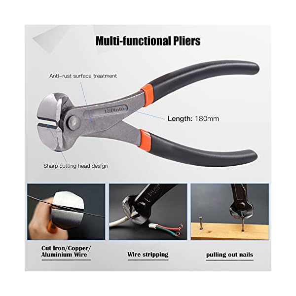 ♛【End Cutting Plier】: The dual use end nipper pliers can be used to cut wires or nails or simply pull them out, perfect for carpenters, construction, handymen, installing new floor.