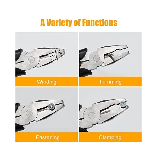 ✅【Labor-saving Design】 Line pliers are designed on the principle of lever. The length of the wall of lineman’s pliers is larger than the head of lineman’s pliers. It can be used safely in small spaces. It has the functions of fastening, clamping, winding, stripping and shearing