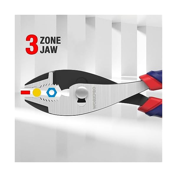 WORKPRO 6” Slip Joint Pliers Tool, Large Soft Grip,Rust Prevention Finish, 3-Zone Serrated Jaw Forged from High Carbon Steel for Maximum Grip