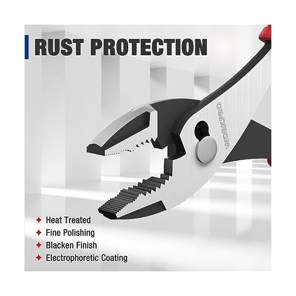 【Durability with Rust-Protection】 These slip joint pliers are made of high carbon steel for maximum grip on materials; processed with 4 boost crafts to improve their hardness and durability