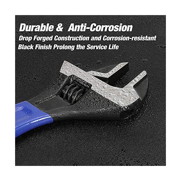 HIGH-QUALITY MATERIAL- The materials of wrenches determine their durability. Our wrench head is made of premium Chrome Vanadium Steel. Heat-treated and drop-forged construction for durability and toughness. Corrosion-resistant black oxide finish prolongs its service life. It is very well constructed, sturdy, and very reliable
