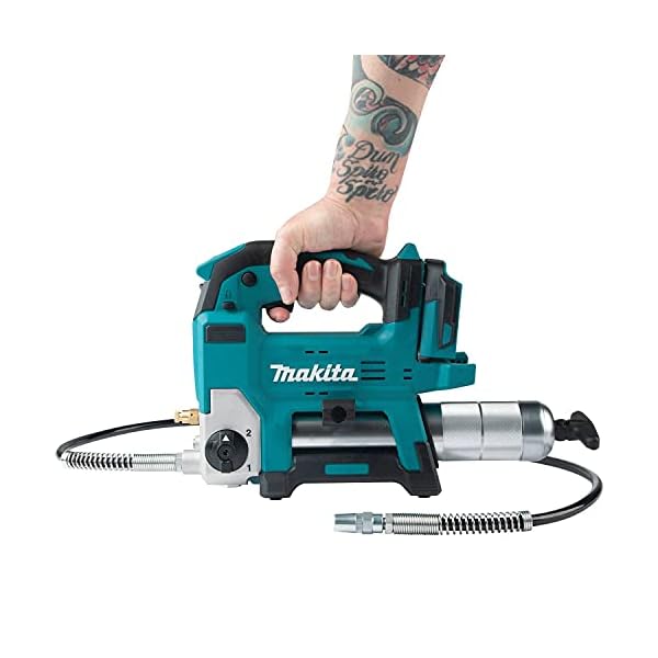 The 18V LXT Grease Gun, Tool Only (XPG01Z) is an ideal cordless solution for the workshop or garage. The powerful Makita-built motor delvers up to 10,000 PSI of max pressure. With a maximum flow rate of 10 oz. per minute, users can work faster. There are two speed modes, slow and auto-switching, that are adjusted by a variable speed trigger. A lock-on button provides convenience during longer work periods.