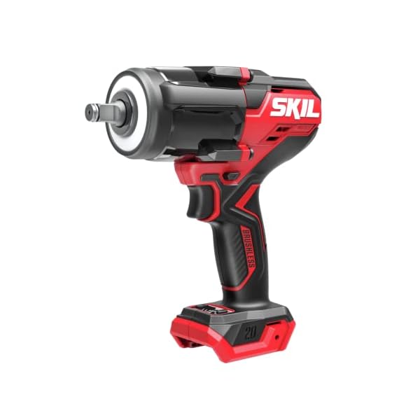 The SKIL PWR CORE 20™ Brushless 20V 1/2-inch Mid-Torque Impact Wrench packs 480 foot-pounds of fastening torque, 800 foot-pounds of breakaway torque in Nut Busting Mode to remove rusted nuts and bolts, and up to 2,600 IPM for tough driving applications. This cordless impact wrench features a 1/2-inch square anvil with a friction ring for quick and easy socket changes, and its digital brushless motor combined with three-speed selection provides high-performance power and precise control. Use Reverse Control Mode to stop rotation and impact in seconds once a fastener is loosened. This electric impact wrench features a Halo Light™ that provides 5X more light than common LEDs and reduces shadows.