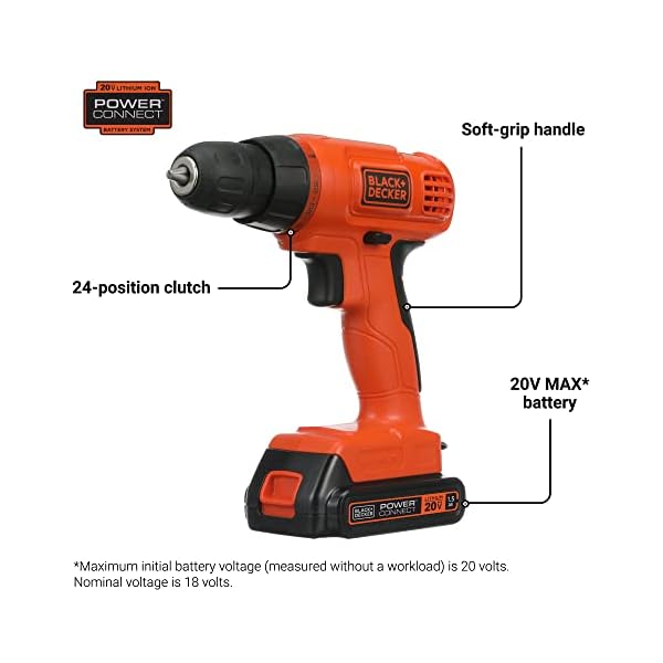 BDC120VA100 (1) LD120 20V MAX lithium-ion drill/driver, (1) LB20 20V MAX lithium-ion battery, (1) LCS20 charger, (1) 100-piece accessory kit