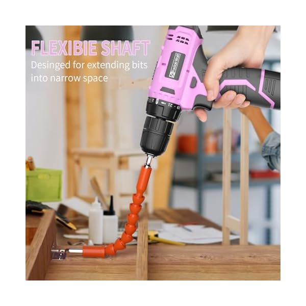 Cordless Drill Set, 12V Power Drill Set with Battery and Charger, 3/8” Keyless Chuck, 21+1 Torque Setting, 180 inch-lbs, Pink Electric Drill for Women’s Garden DIY Projects(Pink)
