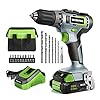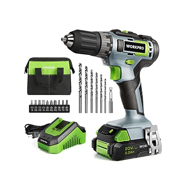 High Quality & Affordable Drill Kit: 20V Cordless Drill Driver with 1*2.0Ah Battery, 1*2.4A Fast Charger, 6 PC HSS4341 drill bits(1/8”, 5/32”, 3/16”, 11/64”, 7/32”, 1/4”), 1 PC 60mm magnetic extension bar, 10 PC 1″ Cr-v bits(PH1, PH2, PH3, 1/8, 5/32, 3/16, 1/4, T10, T15, T20), and 11-inch Storage Bag Included This Cordless Drill Kit is an ideal gift for your father, mom, husband, boyfriend, son, wife
