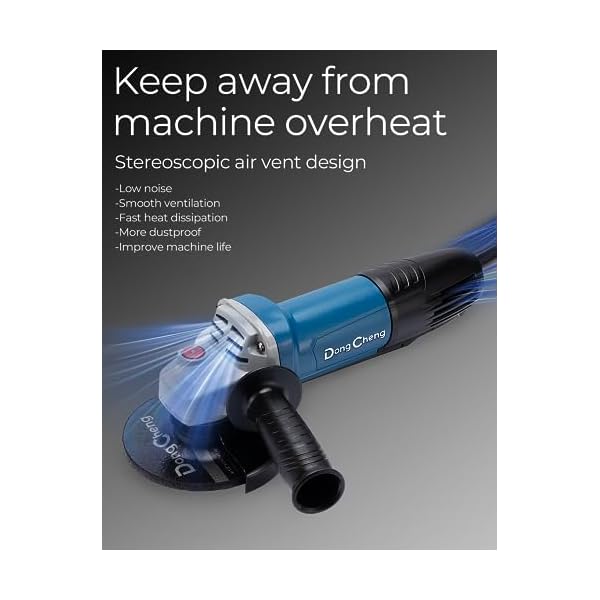 Stereoscopic air vent design – Far away from the power grinder hot, low noise, smooth ventilation, fast heat dissipation, more dustproof, can improve the life of the cordless angle grinder.