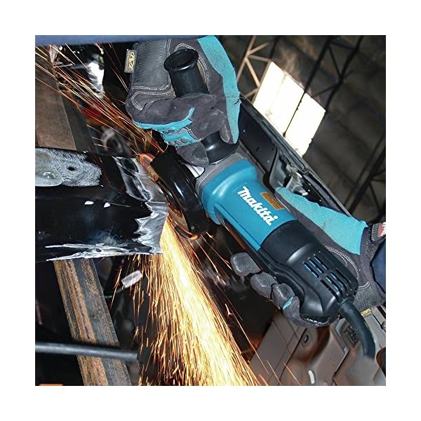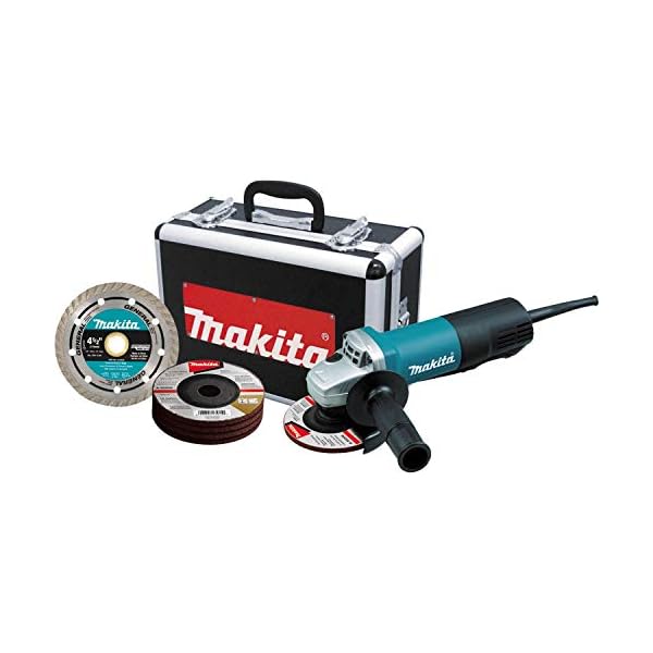 This powerful 7.5 Amp Makita angle grinder has an exclusive labyrinth construction that seals the motor and bearing from contamination.The 9557NBX features a switch (AC/DC) that is conveniently located on the top of the motor housing and a small circumference barrel grip for easy handling. 4-1/2″ Angle Grinder AC/DC, 7.5A Motor For Heavy Professional Grinding Applications, Spindle Lock For Easy Wheel Changes, Small Circumference Barrel Grip For Easy Handling, Side Handle Can Be Installed On Either Side Of Tool For Operator Convenience, Switch Is Located On Side Of The Motor Housing; Lock-On Feature, Grinder Includes: 4-1/2″ Grinding Wheels, Side Handle & Wheel Guard, Includes Extra Diamond Wheel and carry case.