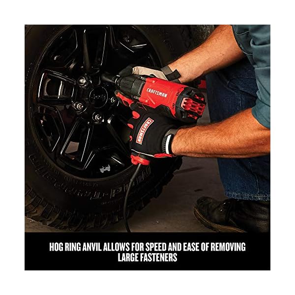 7.5 Amp 1/2-inch Impact Wrench has a max torque rating of 450 ft.-lbs. CRAFTSMAN impact wrench also comes with a hog ring anvil allowing for speed and ease of removing large fasteners.