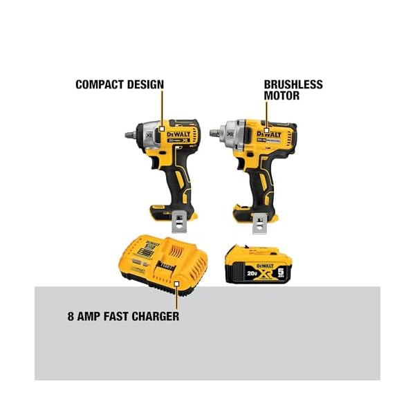 EXPAND YOUR SYSTEM with the 20V MAX XR 2-Tool Combo Kit including a 1/2 in. Mid-Range Impact Wrench and 3/8 in. Compact Impact Wrench. This kit also includes one 20V MAX XR 5Ah battery and an 8 Amp Fast Charger with 2X the charge rate (vs. DCB115).