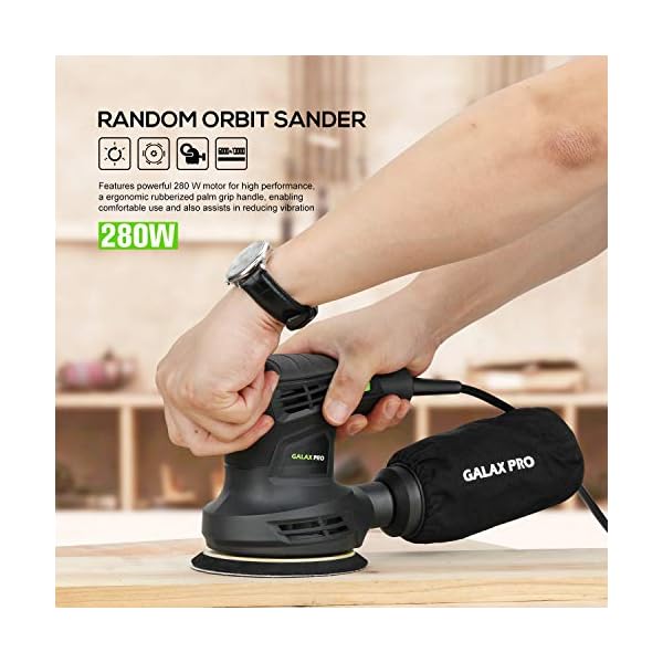 GALAX PRO 280W 13000OPM Max 6 Variable Speeds Orbital Sander with 15Pcs Sanding Discs, 5” electric Sander with Dust Collector for Sanding and Polishing