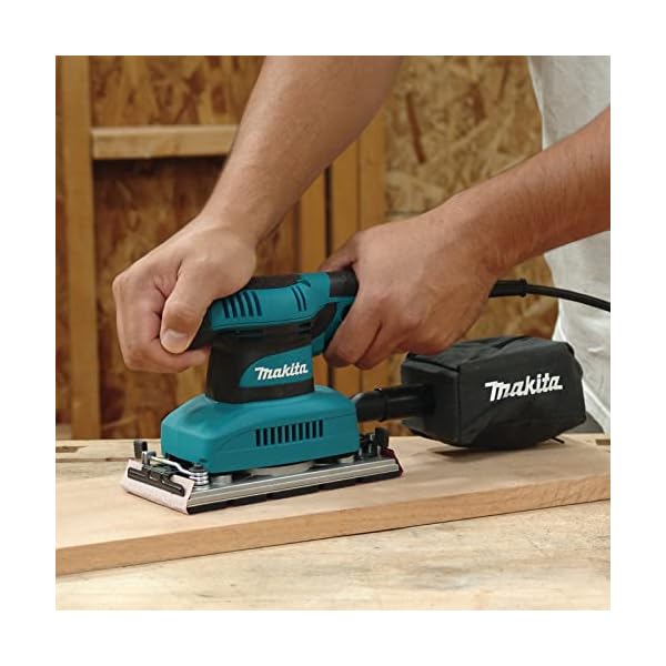 The Makita BO3710 is small and powerful for fast removal of material. Includes 1/3 Sheet Finishing Sander – BO3710, Abrasive Paper #120 – 794568-3, Dust Bag – 140115-2, Punch Plate – 451271-6