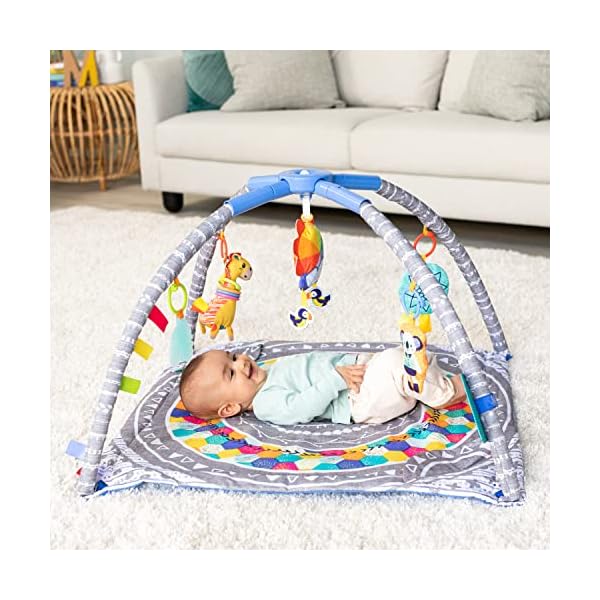 VISUALLY APPEALING & STIMULATING: Babies will love exploring and interacting with this colorful, high contrast boho-inspired play gym with peek-a-boo flaps, fun crinkle sounds, and an eye-catching musical mobile.
