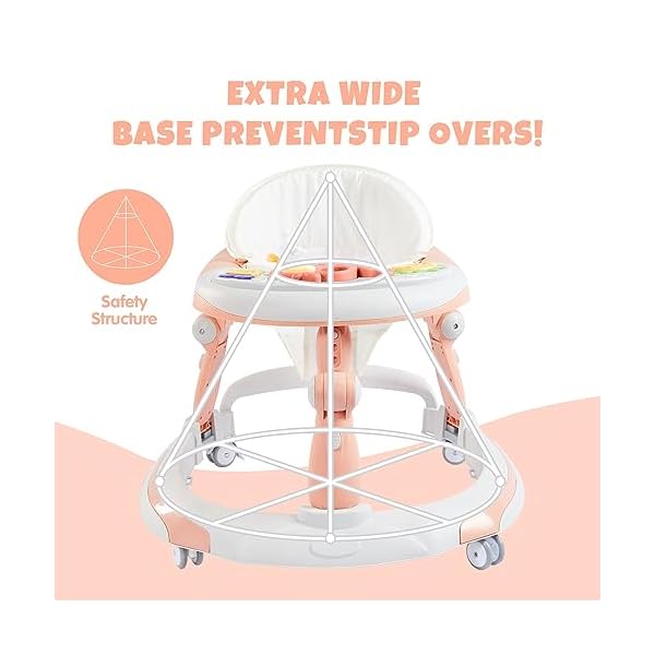 【Fun Music Box】The music box(without battery) on the baby walkers for girls with fun lights and music can satisfy baby’s curiosity, and the small toys on the music box can add fun while babies learn to walk