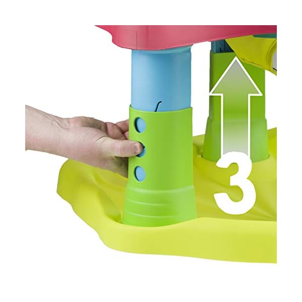 EASY TO USE & CLEAN: Moovin & Groovin features an easy, push button 3 stage height adjustment to allow the product to grow with your baby as well as removable toys and a machine washable pad making cleaning simple and quick