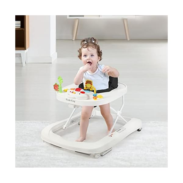 ❤ADJUSTABLE HEIGHT & SPEED: Kinder King baby walker has three adjustable heights for infants of different ages and heights. By adjusting the proper height, you can help your baby better practice walking. The rear wheel nut of the walker can be tightened, loosened to control the speed. The 360°front wheels can work on the thin carpet, making it easier for baby to move. The wheels are strong and durable and will not damage the floor.