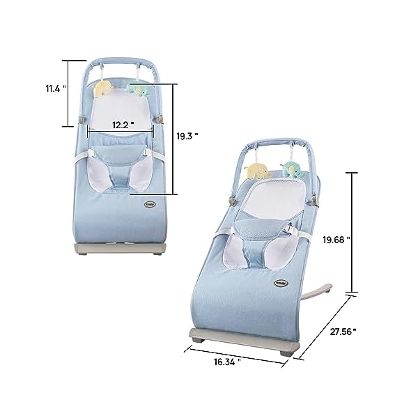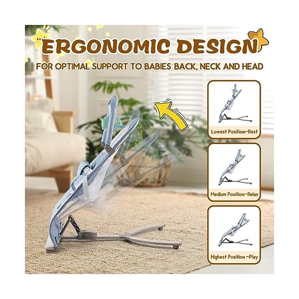 [Flexible Design]: Our Baby Bouncer boasts a flexible design that enables you to discover the ideal angle and position to ensure maximum comfort for your little one. Whether they prefer sitting more upright or enjoying a slight recline, this bouncer guarantees optimal relaxation.