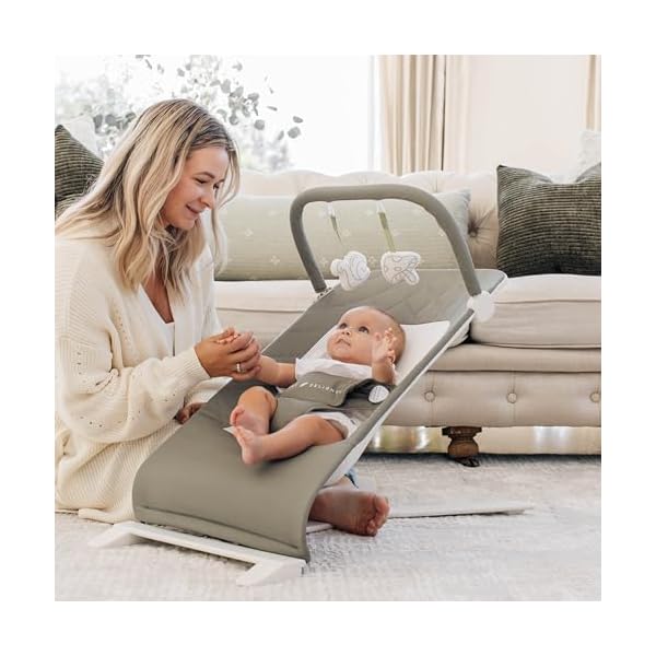 OPTIMAL COMFORT: For ultimate comfort of your baby, we designed this portable bouncer to have 3 different reclining positions. Sit, play, or relax; your baby can do it all in our portable baby seat. Made with 100% GOTS certified organic cotton.
