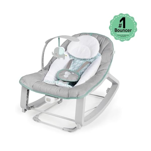 The best-selling Ingenuity Keep Cozy Baby Bouncer, Seat & Infant to Toddler Rocker grows with baby to be enjoyed for years. A new parent “must-have” with over half a million units sold, this baby rocker and bouncer from the #1 manufacturer of bouncers is designed in the USA and gives you a second set of hands while baby sits comfortably in your sight. Third party tested and approved, the Keep Cozy features 3 modes in 1: bouncing, rocking, or convert it to a stationary seat for your toddler with the kickstand at the rear. Packed with features like soothing vibrations powered by 1 C battery (not included), two reclining positions for baby’s comfort and a removable infant bolster that helps newborns sit securely. Includes a detachable plush elephant hanging toy for playtime at home or on the go. Neutral design blends into any home décor. Seat pad and bolster are machine washable. Accommodates children up to 40 pounds. So versatile, it makes a great add to your baby registry, too. Assembled dimensions are 24.41″ (H) x 19.49″ (W) x 26.38″ (D). This is the #1 bouncer, Circana, Retail Tracking Service, Bouncers, U.S. dollar sales, January-November 2023 combined.