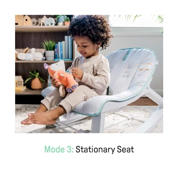 The best-selling Ingenuity Keep Cozy Baby Bouncer, Rocker & Toddler Seat has 3 modes for parent convenience and baby preference: bouncing, rocking, and stationary seat (kickstand at the rear of the chair)