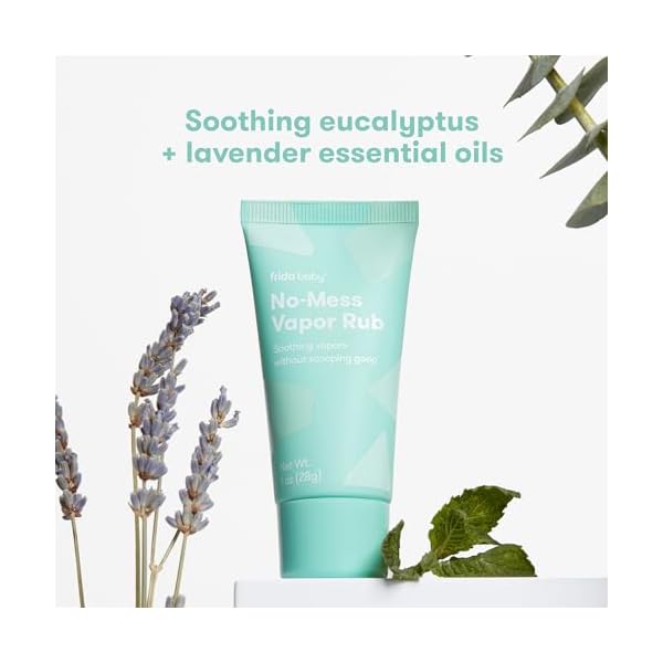 Frida Baby No-Mess Vapor Rub, Baby Vapor Rub for Chest, Neck, Back + Foot,Non-staining, Petroleum-Free Hands-Free Applicator Tube, Soothing Eucalyptus & Lavender for Sleep
