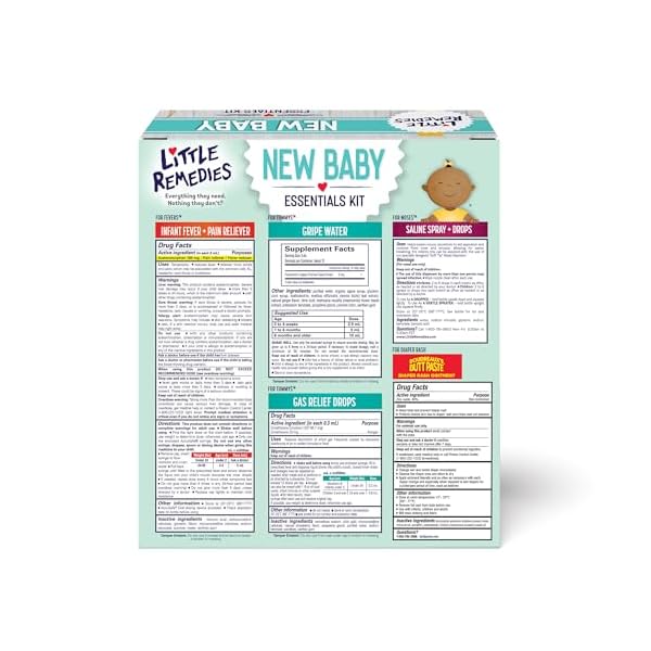Little Remedies, New Baby Essentials Kit, 6 Newborn Essentials, Saline Nasal Spray, Gas Relief Drops, Gripe Water, Fever Reliever, & Diaper Ointment