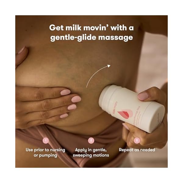 Get milk moving with a gentle-glide massage. The Frida Mom Milk Flowing Massage stick has a simple, water-based formula infused with Chamomile and Aloe that enables a soothing gentle-glide massage for full breastfeeding boobs. Formulated without parabens, phthalates, or dyes, the simple, water-based formula is dermatologist tested for sensitive skin and is safe for mom + baby.