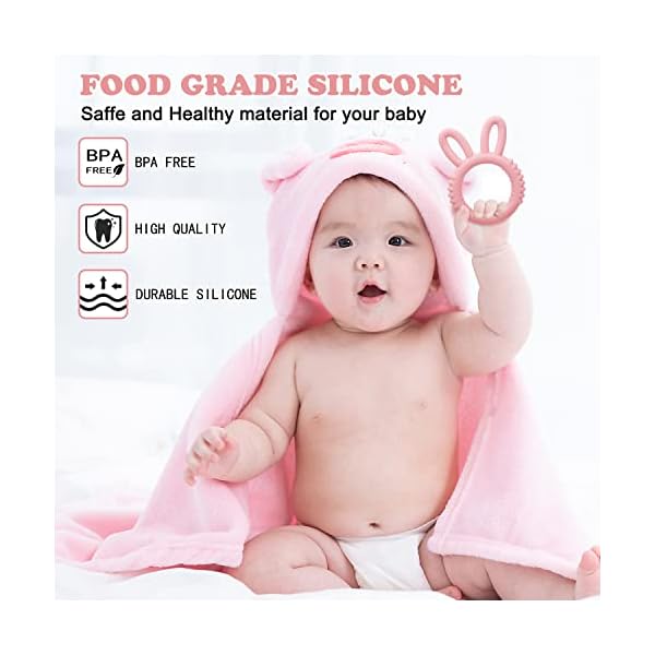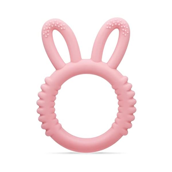 Silicone Babies Teethers Baby Teething Toys for Soothe Massage Sore Gums for 3-12 Months Infants, BPA Free, Ring Shape Rabbit Ear Design (Pink)