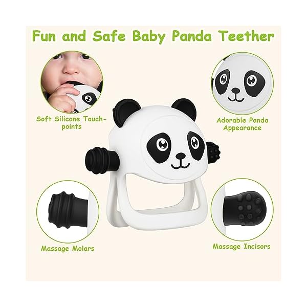 Easy to Hold: Teething toys are designed according to the appearance of cute pandas. Our panda newborn teether features a stem inside its body, providing a grip for little hands to hold onto. When the baby holds the teething mittens, the nipples are on both sides, making it easy to locate and place in their mouth. This design helps to exercise the baby’s grasping ability while providing relief from teething pain.