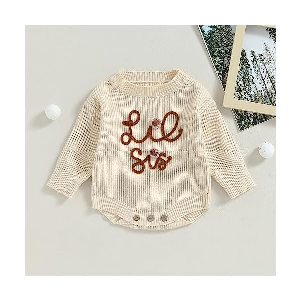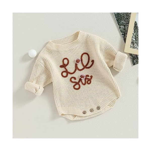 VISGOGO Big Little Sister Matching Set Baby Girls Knitted Sweater Embroidery Toddler Sweatshirt Romper Clothes