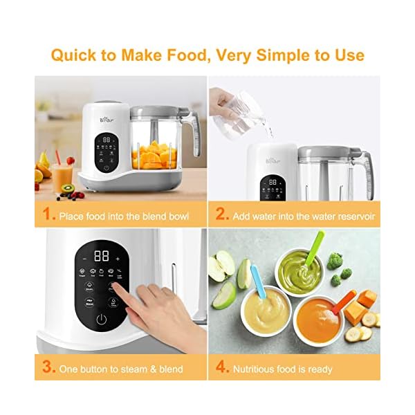 💖【One-Step Baby Food Processor】It has a built-in menu to preset for vegetable, fruit, fish or meat for your little one. Just choose a function, the baby food steamer and blender can complete the rest, eliminating tedious and redundant steps. It’s greatly suit for new moms and dads.