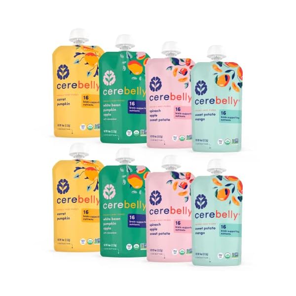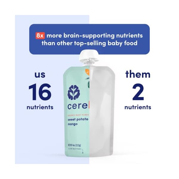 SUPPORTS COGNITIVE DEVELOPMENT – Cerebelly pouches are the only organic fruit pouch (and veggie pouch) that delivers 16 key brain-supporting nutrients studied by our founder. A downright delicious blend high in Iron, Copper, Folate, and Choline that helps your little one’s brain manage speech and supports the development of their visual processing. Other veggie pouches for toddlers and regular baby formula lack the quality brain nutrients we know your growing baby needs!