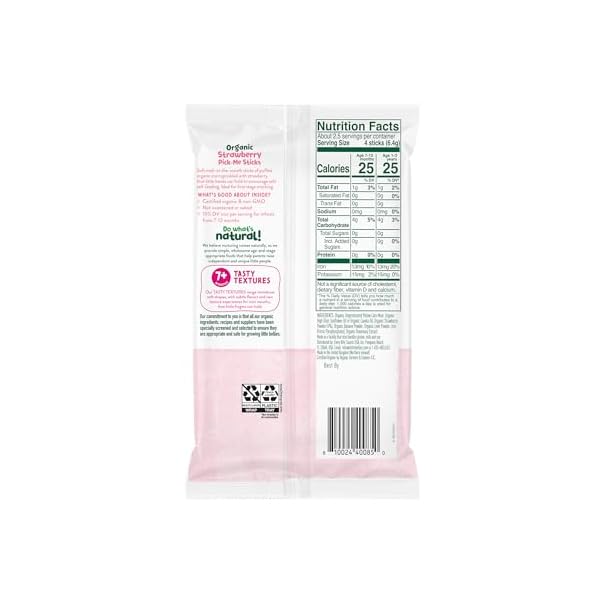 Baby Bellies Organic Pick-Me Sticks Strawberry Puff Snacks are deliciously crisp organic corn puff sticks sprinkled with strawberry that melt in the mouth for safe self-feeding are ideal for first-stage snacking.