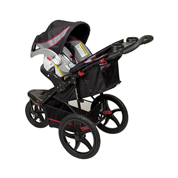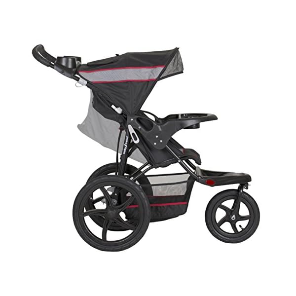 The Baby Trend® Range Jogger combines all the comfort and convenient features for active families. With all terrain composite wheels this jogger provides excellent maneuverability and stability. The locking swivel wheel allows you to lock the front wheel in place when jogging and unlock it for easy low speed strolling. Two deep cup holders and covered compartment are handy additions for parents. The seat includes 5-point harness with padded covers to secure your child in place and expandable 3-tiered canopy to protect from harmful sun exposure. When resting, park the jogger with the foot activated, dual rear brakes. Effortless trigger-fold easily reduces this jogger to compact size for storage and portability. Create a travel system by adding a Baby Trend infant car seat (sold separately).