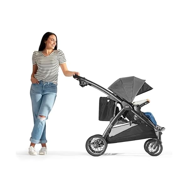 SINGLE-TO-DOUBLE – Includes a fold-down/fold-up youth seat and standing platform with grip bar for older children to ride on the back or add a Chicco infant car seat or a second Full-Sized Modular Toddler Seat (sold separately) to carry two children