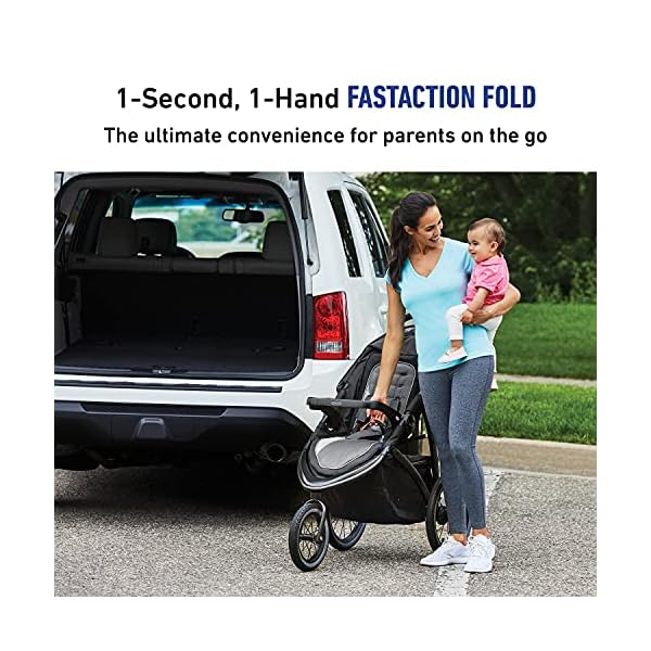 Graco’s signature FastAction one-second, one-hand fold provides the ultimate in convenience for parents on the go