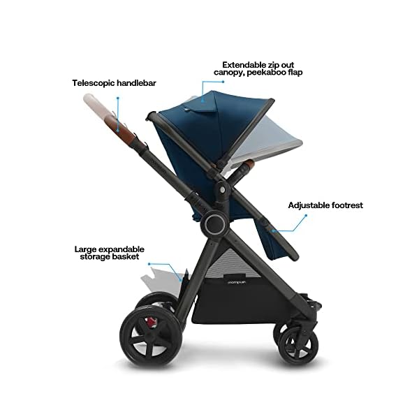 Innovative ergonomic design – Reversible seat lets baby see the world from any direction, along with an adjustable footrest for added comfort. The extendable UPF50+ canopy protects baby from harmful UV rays. The ventilation panels provide airflow and natural light to brighten their day.