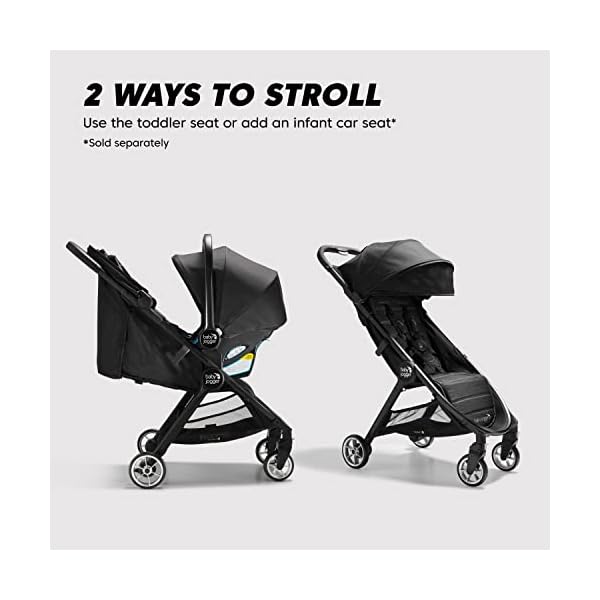 Create a travel system by adding a Baby Jogger infant car seat using adapters (car seat and adapters sold separately)