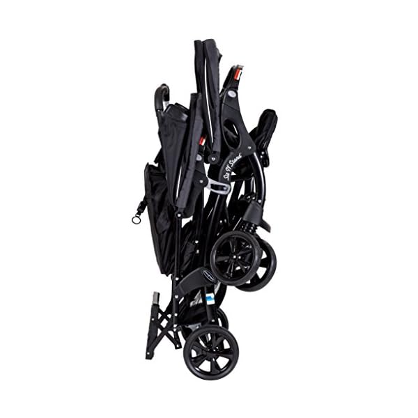 Experience the ultimate in versatility with the Sit N’ Stand® Double Stroller from Baby Trend®. It comfortably seats two children, it accepts two infant car seats, and the rear seat can be removed for use of the included jump seat or standing platform. The two ratcheting canopies provide excellent sun protection for both of your passengers. The parent tray features 2 cup holders and a covered storage compartment for small incidentals and the roomy storage basket holds larger items. Both full-sized seats are equipped with reclining seatbacks, child trays with cup holders, and 5-point safety harnesses. The padded jump seat also includes a 3-point safety harness. The 8″ EVA tires provide a smooth, comfortable ride and the lockable rear wheels provide stability on command. After your excursion, the Sit N’ Stand® folds compact for convenient transport or storage.